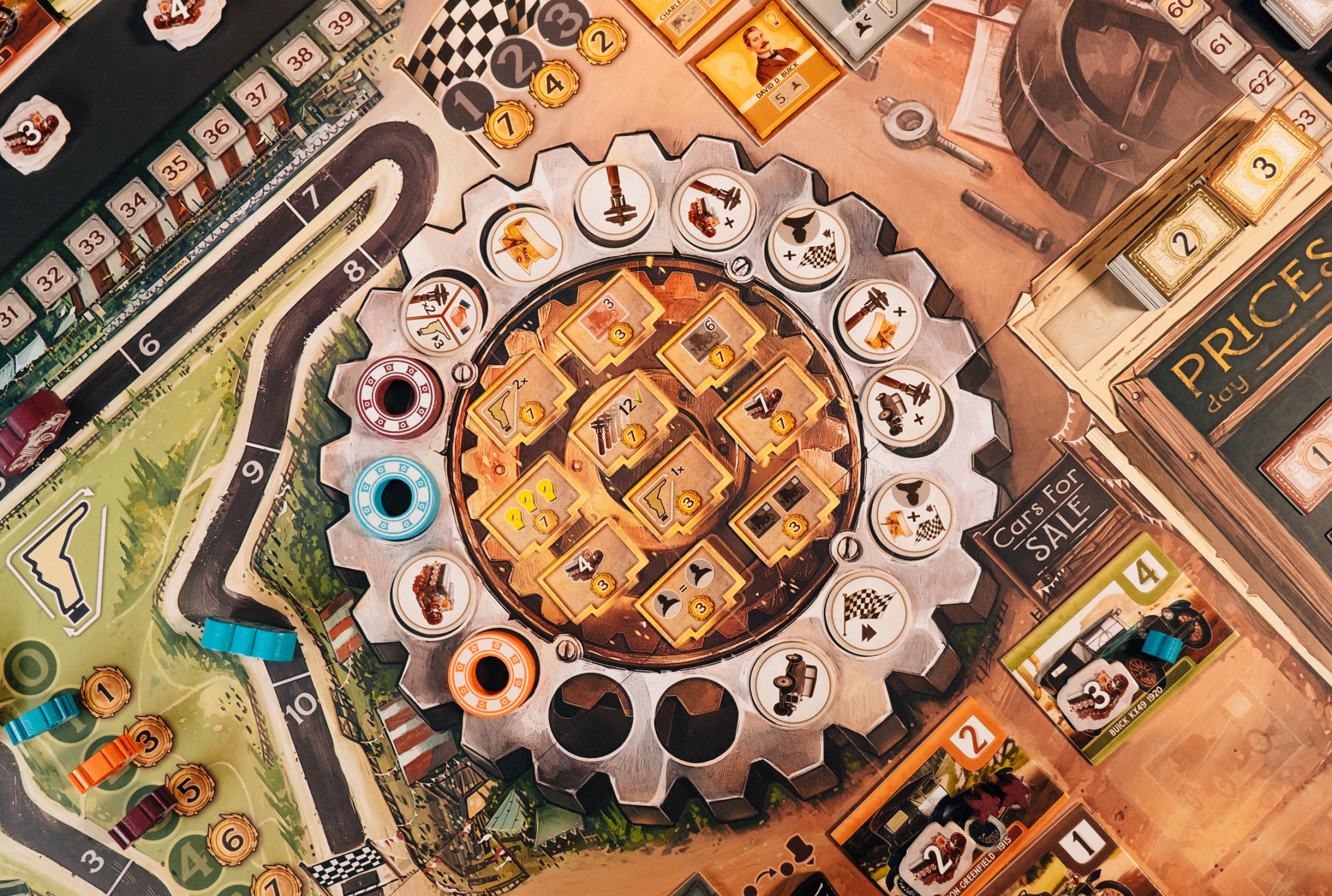Mais le principal, pour un constructeur, sera d’assembler des voitures neuves pour les mettre en vente. Pour cela, Kraftwagen utilise une mécanique cher à Mathias Cramer, l’auteur, où les joueurs vont activer les actions d’une rondelle. Toutefois, ne soyez pas trop gourmand car c’est toujours le dernier joueur, en queue de roue qui joue son tour.